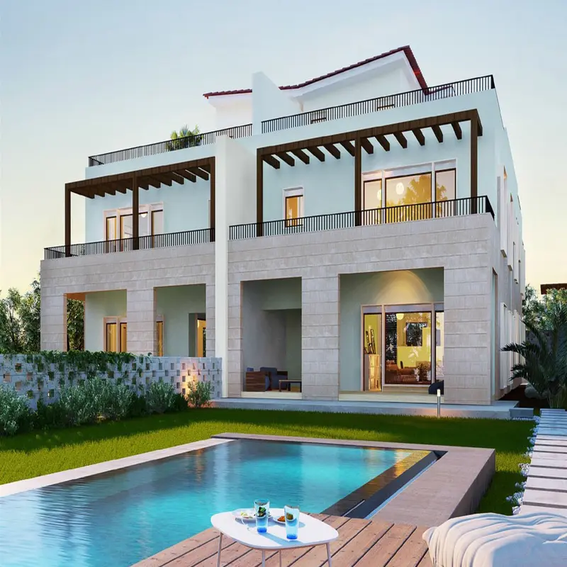 - والفيلات المستقلة تبدأ مساحتها من 220 متر مربع وتصل إلى 550 متر مربع.