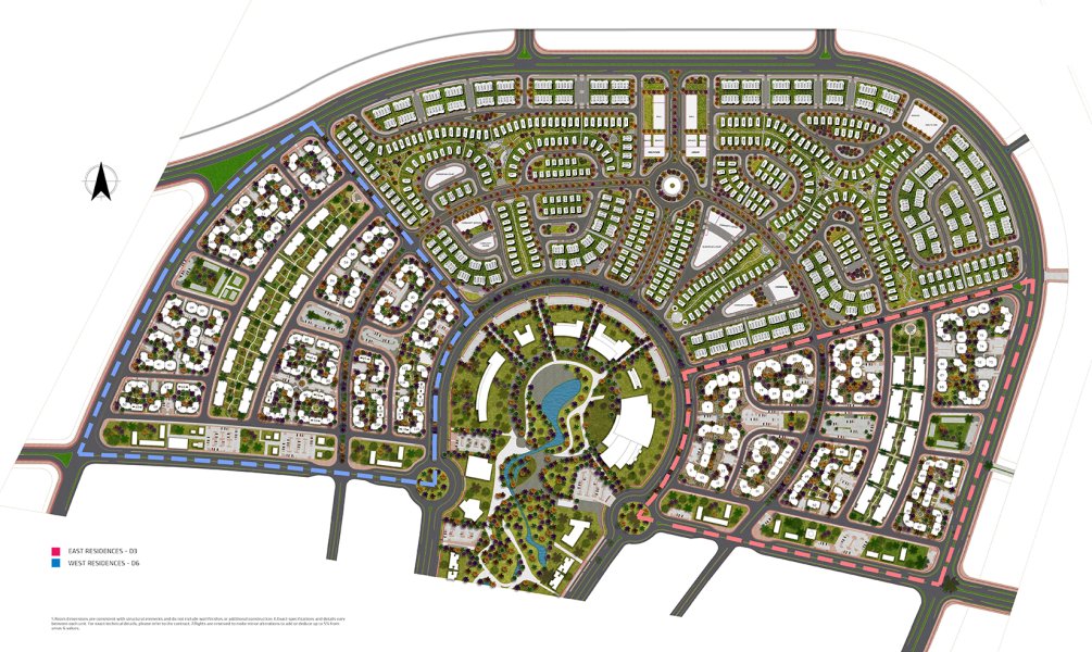 - 6- التاون هاوس تبدأ من 357 متر مربع وتصل إلى 391 متر مربع.