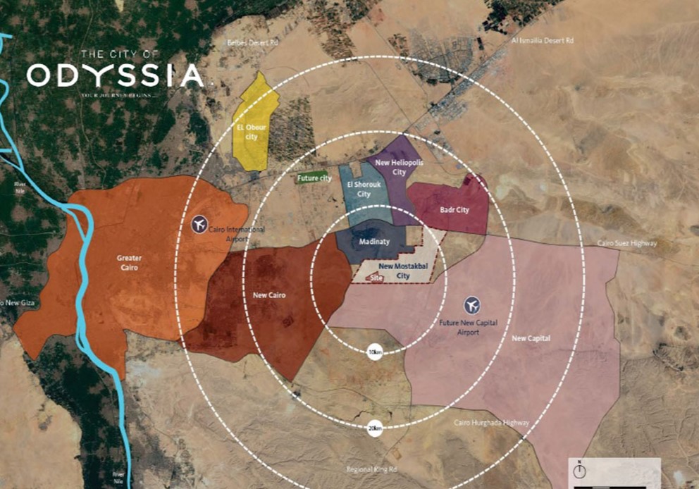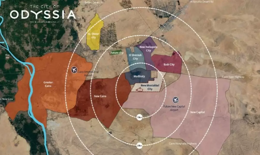 يقع كمبوند داخل مشروع "سيتي او اوديسيا" من صبور علي حدود العاصمة الادارية في قلب مدينة المستقبل بجوار، و يقع الكمبوند بالقرب من أهم المدن والطرق الرئيسية: