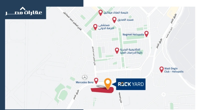 بمنطقة هليوبوليس الجديدة التي يحتضنها حي شيراتون بالقاهرة وعلي مساحة 23000 متر مربع يقع كمبوند روك يارد شيراتون في موقع جغرافي يتميز بالأتي :